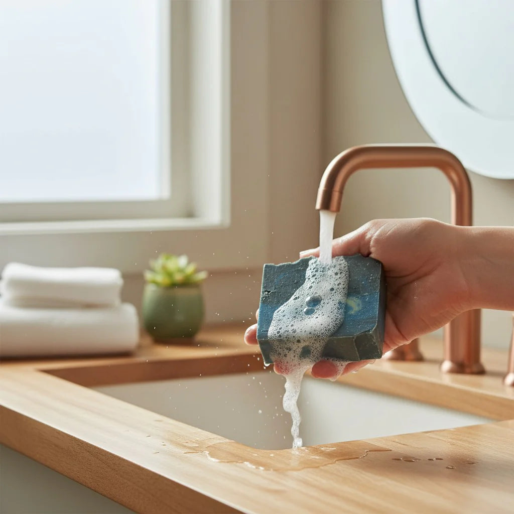 The natural ingredients and vitamins found in our soap provide a very gentle, natural exfoliation, helping to remove dead skin cells and promote a smoother, more radiant complexion without being abrasive. It's a subtle touch of renewal!